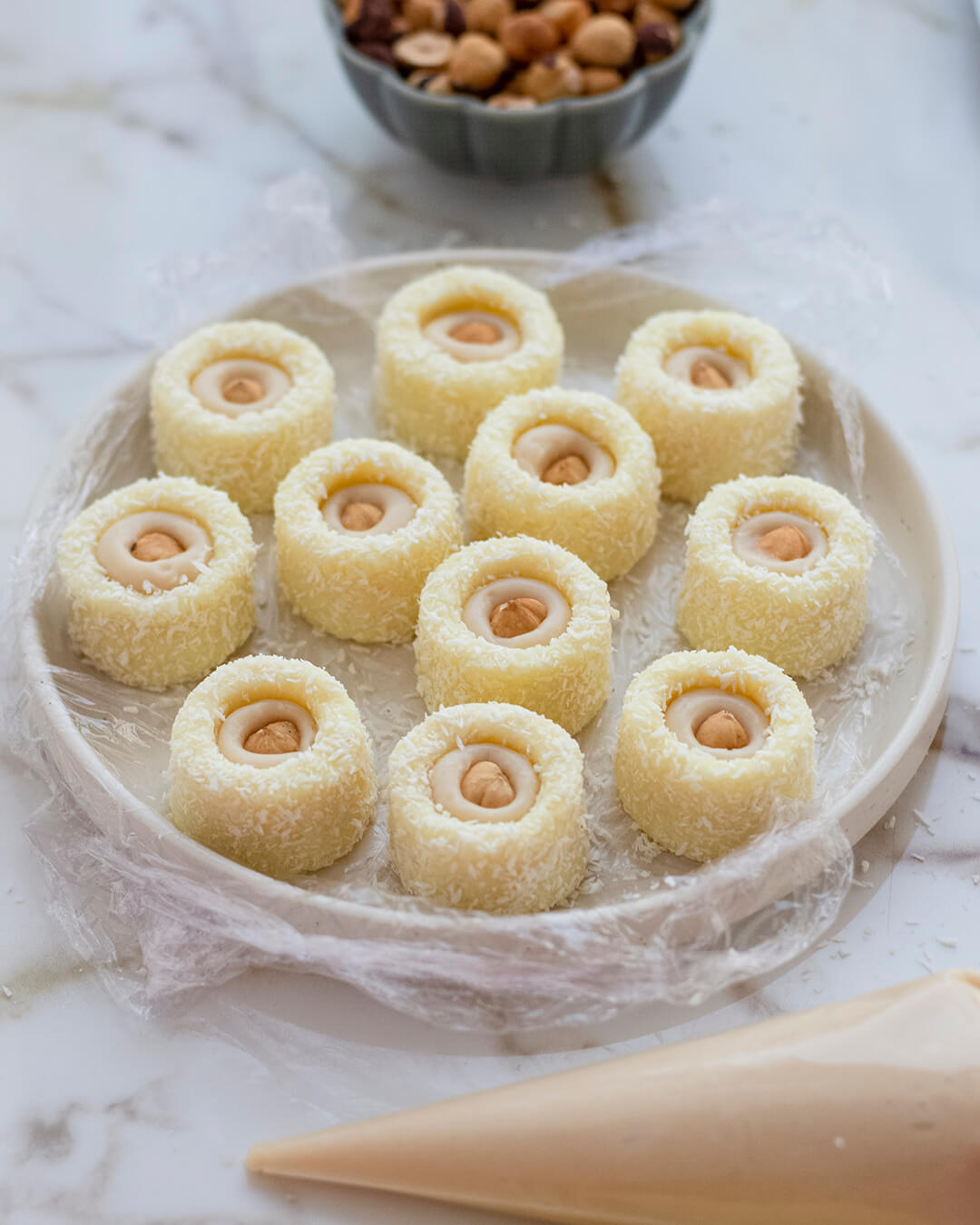 Priprema ovih kuglica je veoma jednostavna i ne zahteva mnogo vremena. Prvi korak je kombinovanje kondenzovanog mleka sa kokosom i istopljenom belom čokoladom. U velikoj posudi dobro sjedinite sve sastojke, pri čemu je važno da smesa bude homogena. Nakon što ste dobili glatku smesu, odvojite jednu trećinu te smese u drugu posudu. U tu manju smesu dodajte istopljenu crnu čokoladu, pa sve ponovo dobro sjedinite. Ova kombinacija crne čokolade sa kokosom pruža poseban ukus koji će oduševiti sve ljubitelje čokolade. Nakon što ste pripremili smese, na providnu foliju stavite belu smesu i oblikujte pravougaonik. U sredinu ovog pravougaonika stavite valjak od tamne smese. Pažljivo urolajte smesu oko tamnog valjka, koristeći foliju za pomoć. Kada ste završili sa oblikovanjem, stavite obavijen valjak u zamrzivač na oko 30 minuta. Ovaj korak je ključan jer pomaže da se kuglice bolje formiraju i olakšava njihovo sečenje.Finalizacija i dekoracija