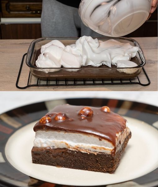 Sve sastojke za kekse (osim brašna i kakaa) pomiješajte mikserom. U smjesu pjenjačom umiješajte brašno i kakao. Smjesu izlijte u manji namašćeni pleh (viši jer nema puno smjese) i pecite na 180 stupnjeva 20 minuta.