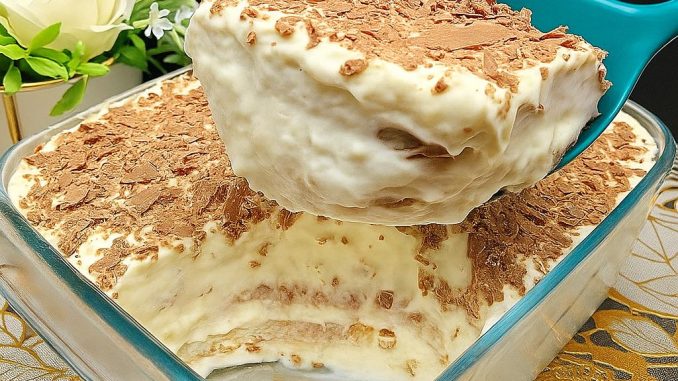 Sada je vrijeme za sastavljanje torte: U odgovarajuću posudu (najčešće za pećnicu) redajte red keksa prethodno umočenog u mlijeko, pa red nadjeva. Postupak ponavljati dok se svi sastojci ne potroše, a završiti slojem nadjeva. Po vrhu naribajte čokoladu i tortu ostavite u hladnjaku da se potpuno ohladi, najmanje 4 sata, a najbolje preko noći.