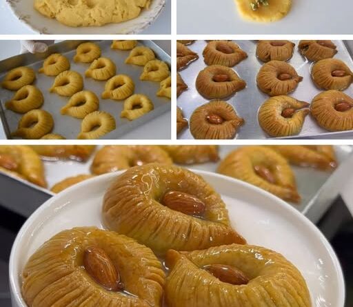 Nakon što ste pripremili tijesto, odvojite ga u 16 jednakih dijelova. Svaku komad oblikujte u kuglicu, a zatim je blago pritisnite kako biste je spljoštili. U sredinu svake spljoštene kuglice stavite punjenje od pistacija, koje možete pojačati dodavanjem malo meda ili vanilije za dodatni okus. Zatim pažljivo spojite ivice kako biste zatvorili punjenje, pazeći da ne ostavite praznine. Rukama oblikujte kolačiće i nožem lagano zarežite površinu kako biste dobili dekorativne linije. Na kraju, spojite dva kraja kolačića u oblik polumjeseca ili srca, što će im dati prepoznatljiv izgled. Ovaj korak ne samo da dodaje izgled, već pomaže i u ravnomjernom pečenju kolačića.
