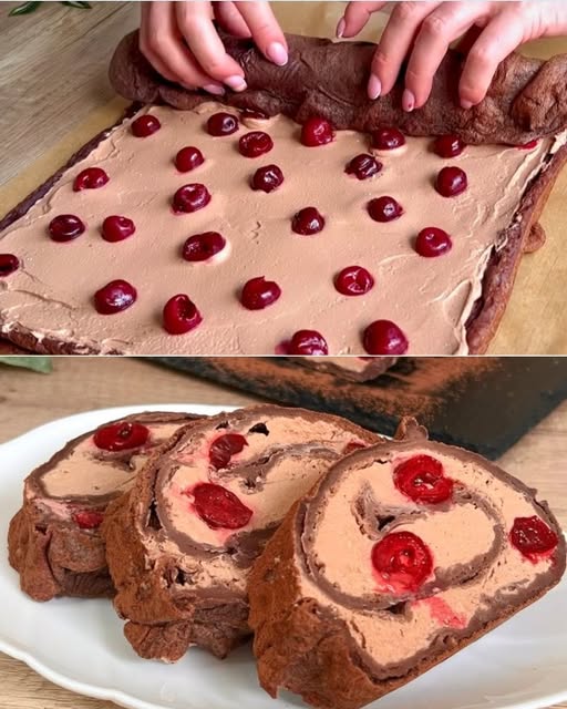 Nadjev premažite preko ohlađenog biskvita i po želji dodajte višnje.