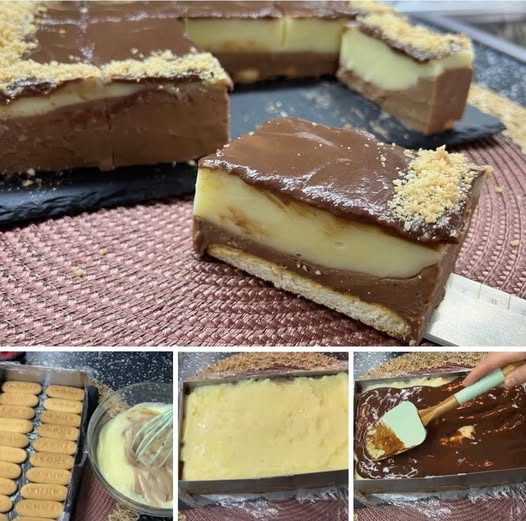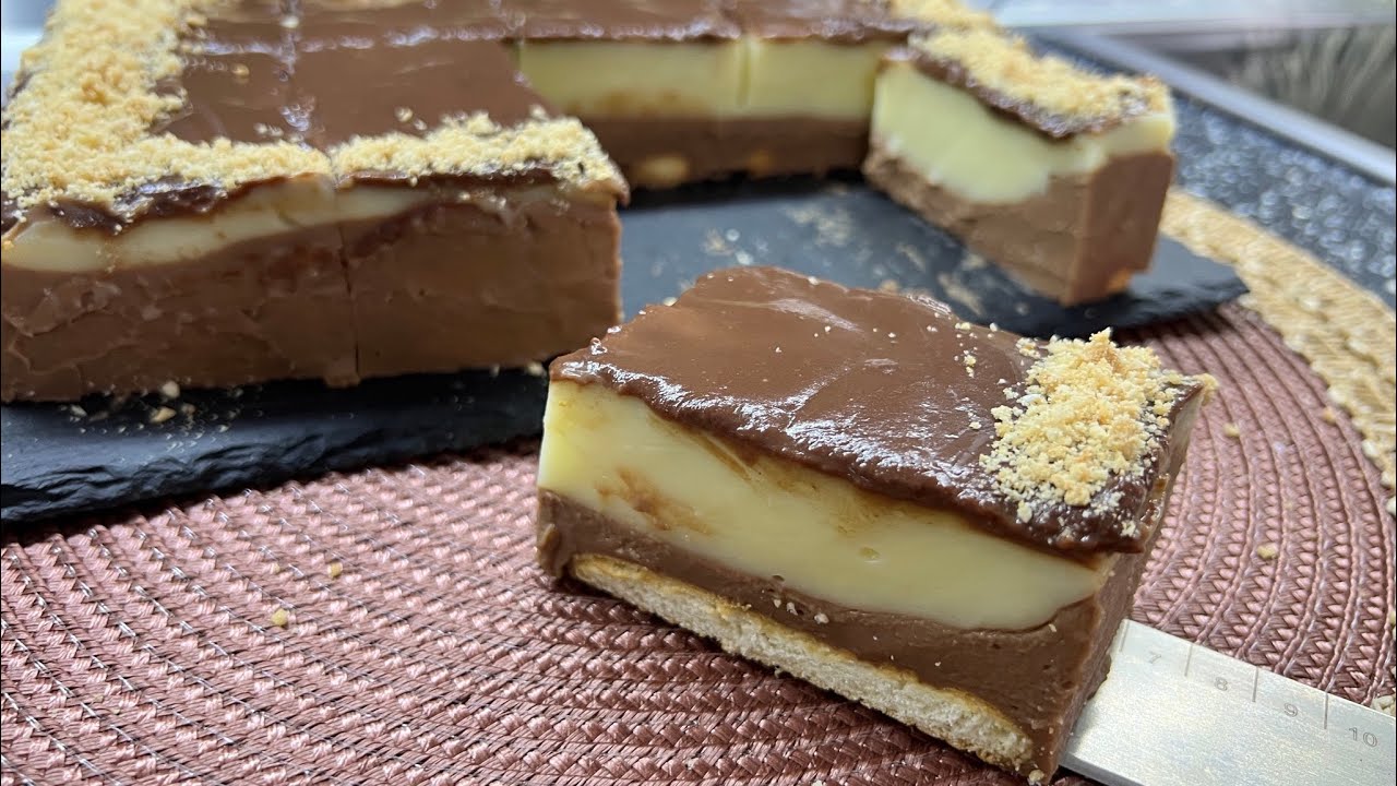 Preko kolačića prvo prelijte čokoladni fil i poravnajte ih, zatim fil prelijte preko pudinga i poravnajte ih.
