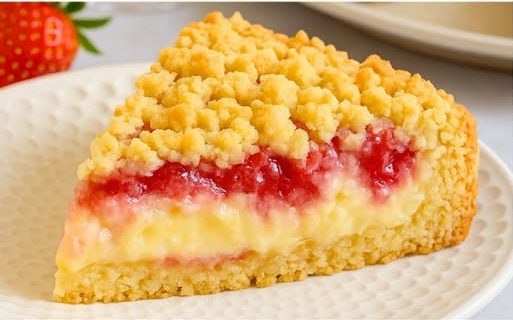 Posljednji korak je punjenje tartu. Naseckane jagode pomešajte sa malo limunovog soka kako biste pojačali njihov ukus. Rasporedite ohlađenu kremu preko pečene kore, a zatim dodajte jagode. Preostalim testom pospite površinu kako biste formirali hrskave mrvice. Vratite u pećnicu na još 10 minuta kako bi mrvice dobile zlatnu boju.
