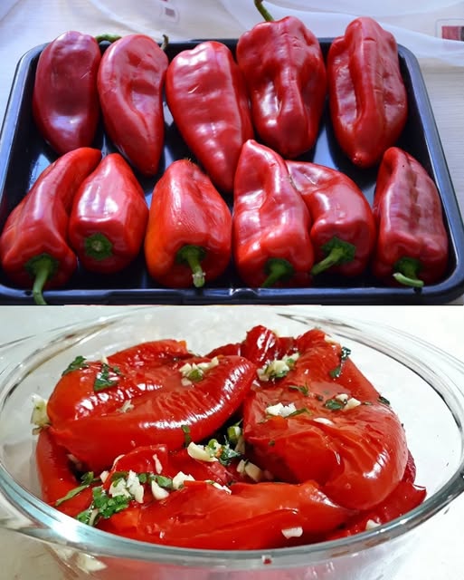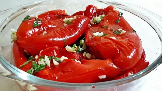 Mesnate paprike babure ili duge slične debele sorte ispecite na štednjaku i ostavite neoguljene da odstoje cijeli dan.