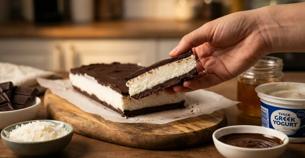 Nakon što je čokoladni biskvit ohlađen, prelazimo na pripremu sloja kokosa. Umutite 2 jaja sa šećerom dok ne dobijete glatku smjesu, koja će kasnije dodati slatkoću i bogatstvo kokos sloju. Zatim dodajte sušeni kokos i dobro izmiješajte. Ovu smjesu izlijte u prethodno podmazan pleh, koji će spriječiti da se kokos zalijepi, a zatim pecite na 200°C oko 20 minuta. Ovaj kokos sloj dodaje nevjerojatnu teksturu i sladak okus, savršeno se uklapajući u čokoladni biskvit, te će biti pravi užitak za svakog ljubitelja kokosa.