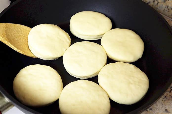 Korak 7: Postavite tijesto u posudu. Ostavite da se sa svake strane peče otprilike 5 minuta ili dok ne dobije zlatnosmeđu boju i dok se potpuno ne ispeče. Budite oprezni prilikom skretanja.