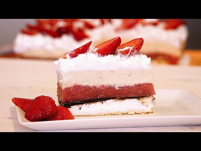 Sada kada su svi sastojci spremni, vrijeme je za sastavljanje torte. Ohlađenu koru izrežite na pola po dužini, tako da dobijete jednu deblju i jednu tanju polovicu. Deblju polovicu stavite na tanjur za posluživanje. Na nju nanesite nekoliko kašika mousse-a od jogurta, a zatim dodajte sloj nadjeva od jagoda. Ovaj postupak ponavljajte dok ne potrošite sve sastojke, završavajući s mousse-om od jogurta na vrhu. Ovakva tehnika slaganja dodaje vizuelnu privlačnost torti i omogućava da se svi okusi međusobno prožmu.
