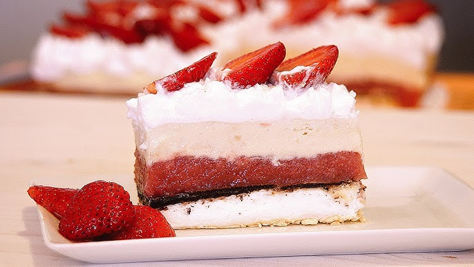 Na kraju, dodajte grčki jogurt u smjesu s želatinom i dobro promiješajte. Na deblju koru nanesite sloj mousse od jogurta, a zatim dodajte sloj nadjeva od jagoda. Ponavljajte postupak dok ne potrošite sve sastojke, a završite s grčkim jogurtom na vrhu. Tortu stavite u hladnjak da se stegne najmanje 4 sata. Ovaj korak je ključan jer će se svi okusi prožeti, a torta će dobiti svoju prepoznatljivu teksturu.