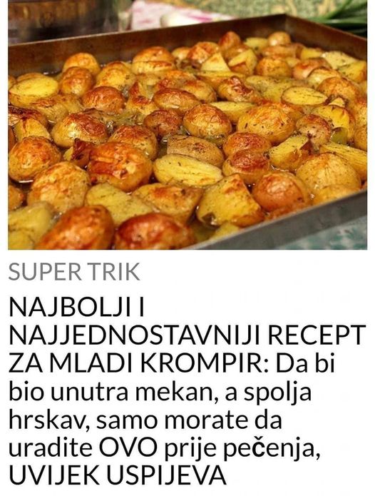 Krompir je ukusan i praktičan za pripremu, a od njega možete da spremate najrazličitija jela. Uskršnji ručak ne može da se zamisli bez ovog priloga, kako je počela sezona mladog krompira, mi vam predlažemo da ga poslužite uz meso.Pečeni je najbolji izbor, a u nastavku teksta pročitajte kako da ga spremite da unutra bude mek, a spolja da ima hrskavu i zlatnu koricu.