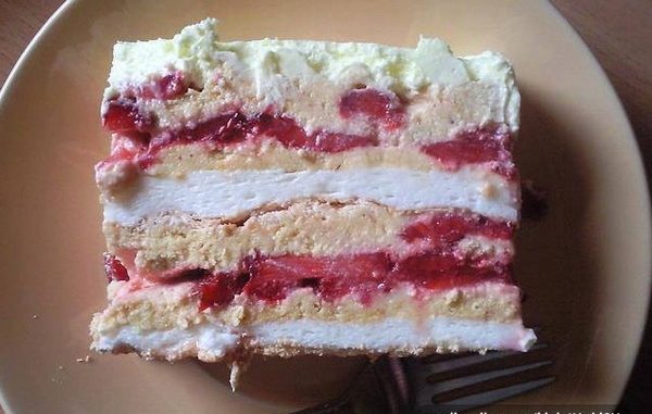 Kada završite sa sastavljanjem, kolač treba da se ohladi u frižideru najmanje nekoliko sati, a najbolje je ostaviti ga preko noći. Hlađenje omogućava da se svi ukusi sjedine i da kolač postane čvrst, što olakšava sečenje i posluživanje. Kada ste spremni da poslužite kolač, sečite ga na jednake delove i možete ga poslužiti uz dodatak šlaga ili svežih jagoda. Ovaj kolač je savršeni izbor za razne prilike, bilo da se radi o rođendanskoj proslavi, porodičnom okupljanju ili jednostavno kao poslastica za vašu porodicu tokom vikenda.