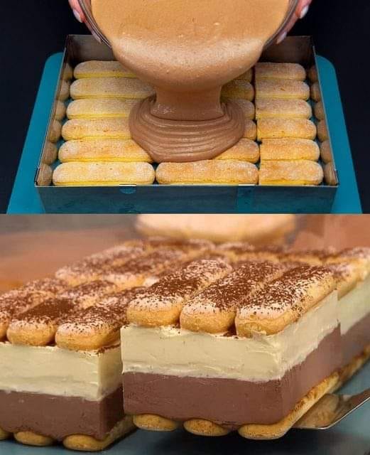 Započnite ravnomjerno rasporedite sloj tamnije čokolade na dno, osiguravajući glatku površinu pomoću lopatice. Zatim nanesite svjetliji sloj na tamni sloj, pažljivo ga rasporedite i zagladite.