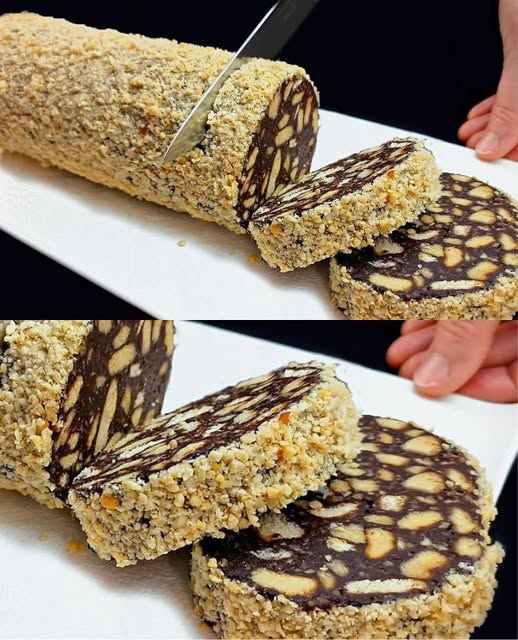 Kada su svi sastojci dobro povezani, prebacite smjesu na pek papir i oblikujte rolat. Ävrsto zamotajte rolat i stavite ga u friÅŸider na nekoliko sati ili, joÅ¡ bolje, preko noÄi. Ovaj proces hlaÄenja Äe omoguÄiti da se svi okusi sjedine i da se kolaÄ stegne, Å¡to Äe olakÅ¡ati rezanje.