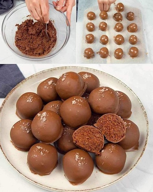Započnite topljenjem čokolade u posudi, a zatim umočite tartufe u otopljenu čokoladu. Pustite da sav višak čokolade iscuri. Kako biste poboljšali okus, svaki tartuf lagano pospite prstohvatom soli. Prije posluživanja tartufa bitno je dopustiti da se čokoladni premaz skrutne.