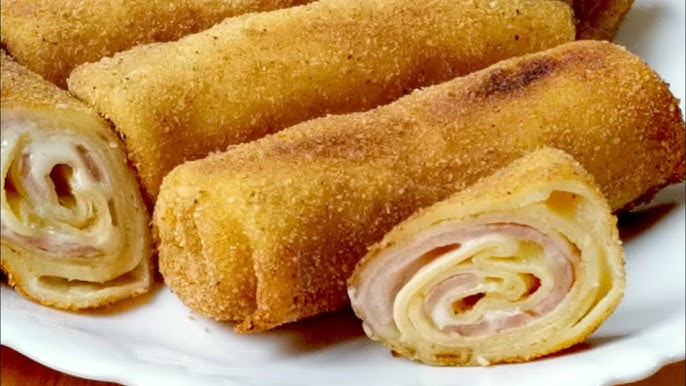 Kada su palačinke ohlađene, vrijeme je za punjenje. Na svaku palačinku stavite malo pripremljenog punjenja i pažljivo je preklopite sa strana, a zatim urolajte. Ovaj način savijanja osigurava da punjenje ostane unutar palačinke tokom pečenja. Smotane palačinke umočite u umućena jaja, a zatim ih lagano uvaljajte u krušne mrvice. Važno je ne pritiskati previše kako biste zadržali zrak u mrvicama i dobili hrskavu koricu. Ovaj korak je ključan za postizanje savršene teksture.Pečenje