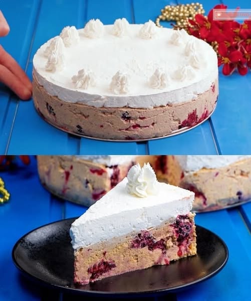 800 ml slatkog vrhnja, 400 ml kiselog vrhnja, 150 g šećera u prahu, 500 g mljevenih oraha, 250 ml mlijeka i 500 g smrznutog bobičastog voća.