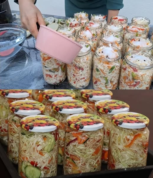 Povrće stavite u staklenke i dobro zatvorite. Sve preliti vrućim dresingom.