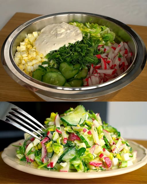 Pažljivo pomiješajte sve sastojke, pazeći da su preljev i jaja dobro uklopljeni. Vaša ukusna i hranjiva salata od krastavaca sada je spremna za uživanje!