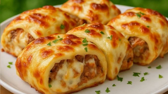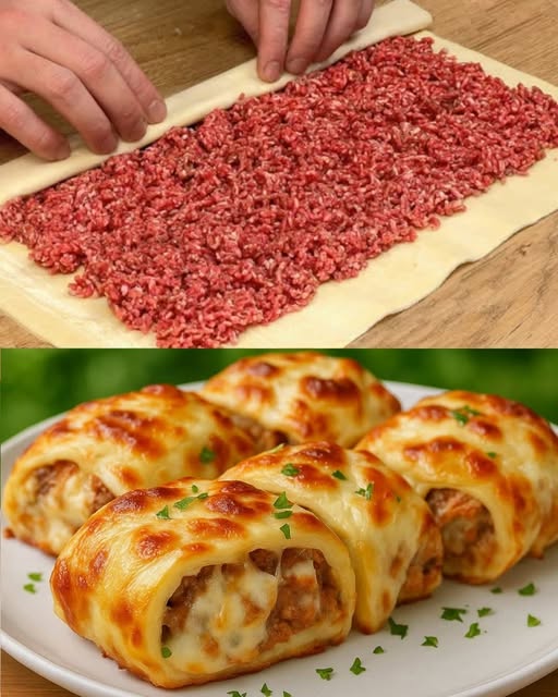 Rolada od lisnatog tijesta punjena mljevenim mesom i umakom od jogurta