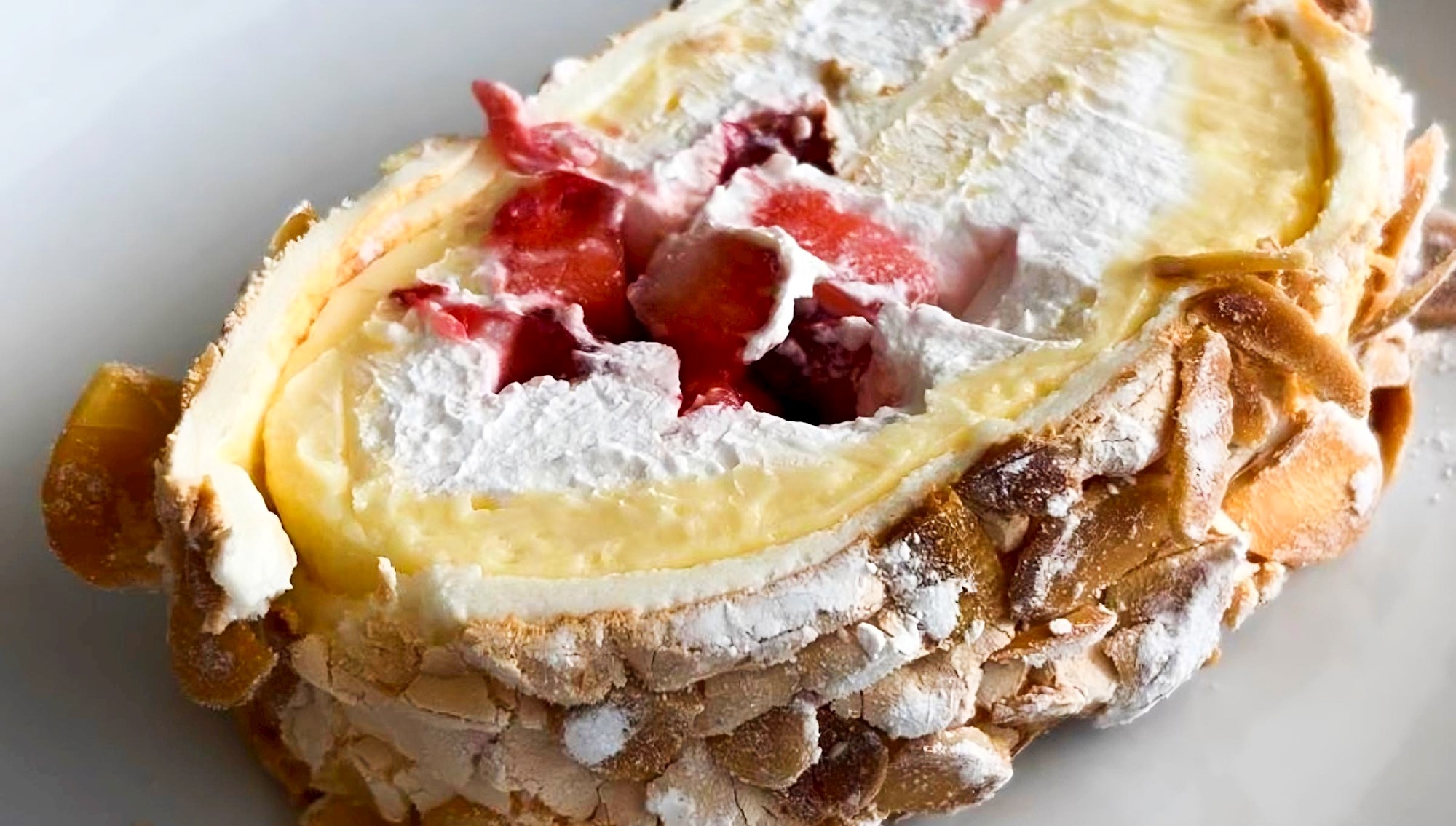 * 50 ml punomasnog mlijeka (predviđeno za namakanje biskvita) * Pržene kokosove ljuskice namijenjene za premazivanje rolade.: