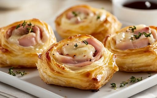Jedna od najzabavnijih faza pripreme je sastavljanje peciva. Lisnato tijesto premažite tankim slojem Dijon senfa, ukoliko ga koristite. Na jednu polovicu tijesta posložite kriške šunke i sira, ostavljajući mali rub oko rubova, kako bi se pecivo moglo lakše zatvoriti.