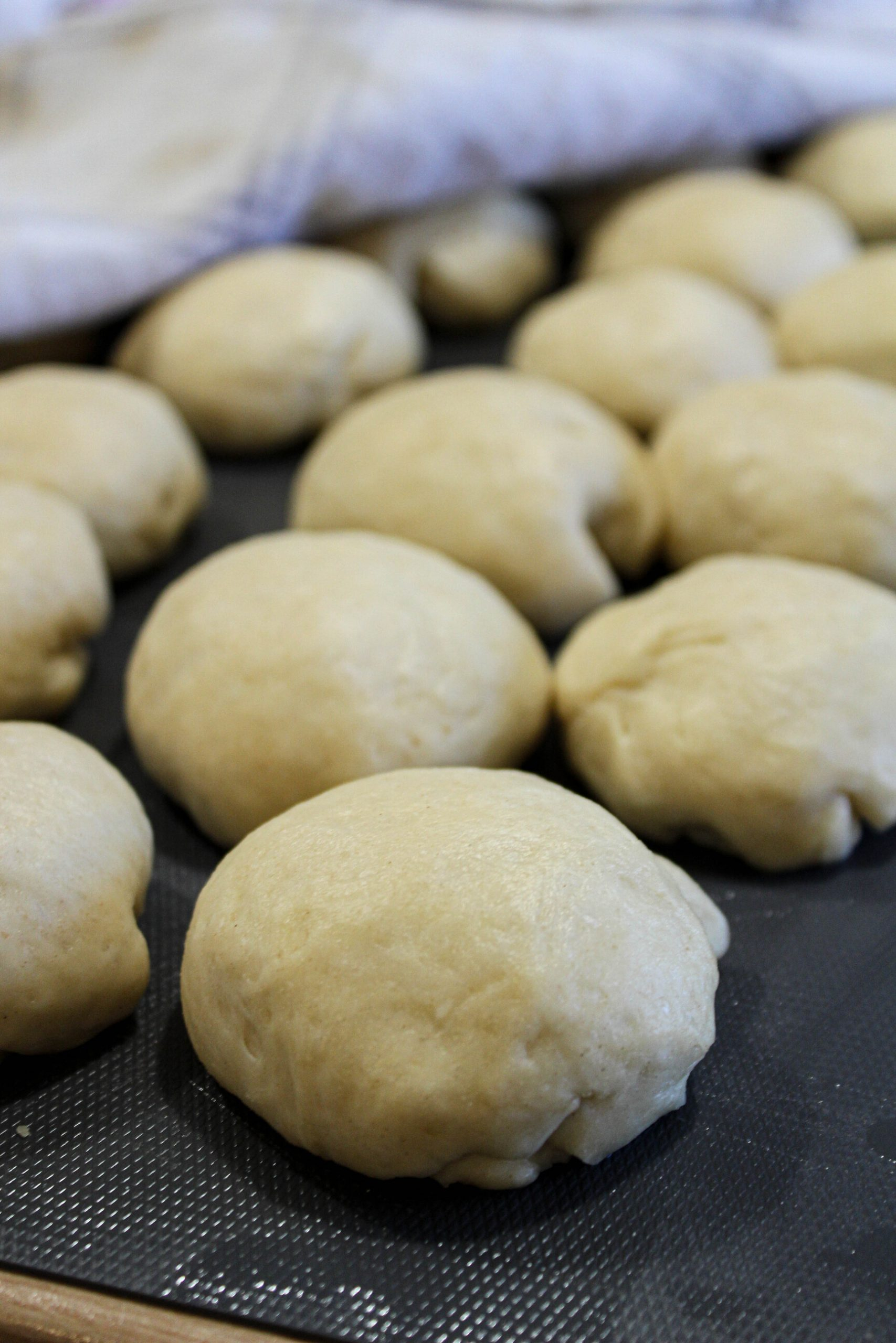 Kada ste umijesili tijesto, oblikujte ga u loptu i stavite u posudu prekrivenu kuhinjskom krpom. Ostavite da se diže na toplom mjestu oko 30 minuta, ili dok ne udvostruči svoj volumen. Ovaj proces je od ključne važnosti jer doprinosi sočnosti i prozračnosti vaših hljepčića. Nakon što se tijesto diglo, premjestite ga na blago nauljenu površinu i podijelite ga na 21 manji komad.Svaki komadić oblikujte u hljepčić ili kiflicu, prema vlastitim preferencijama. Nema potrebe da budu svi savršeni – nesavršenosti daju šarm svakoj domaćoj poslastici! Rasporedite ih u prethodno pripremljen pleh za pečenje. Premažite ih umućenim žumanjkom i pospite solju ili drugim začinima po izboru. Za dodatni vizuelni i ukusni dojam, možete dodati i sjemenke, kao što su sjemenke suncokreta ili lanene sjemenke, koje će dodati hrskavost hljepčićima.