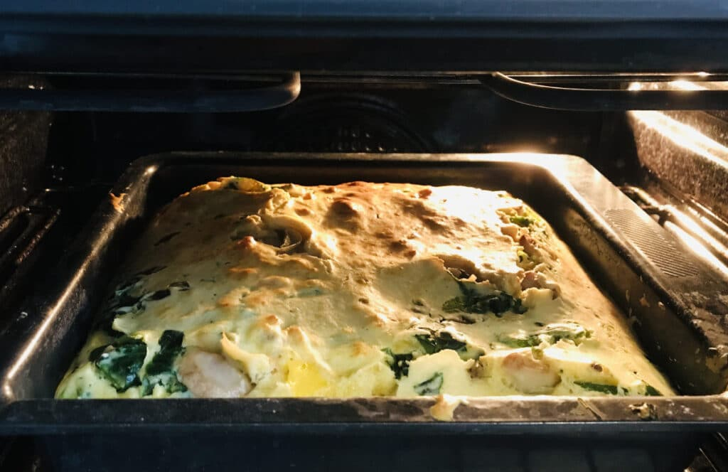 Prvo, pripremite sve potrebne sastojke. Zagrijte pećnicu na 180°C (350°F) kako biste osigurali idealnu temperaturu za pečenje. Sitno nasjeckajte luk i špinat, a zatim u prostranoj zdjeli za miješanje umutite jaja, dodajući sol, crni papar, češnjak u prahu, ulje, mlijeko i krem sir. Miješajte dok se sve dobro ne sjedini, a zatim dodajte nasjeckani špinat i luk, osiguravajući da su ravnomjerno raspoređeni. Ovaj korak je ključan jer ravnomjerna distribucija povrća doprinosi boljem okusu i teksturi pite.