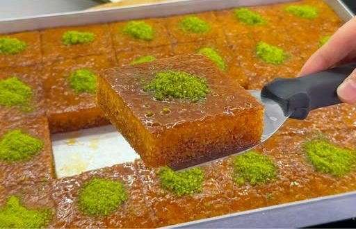 Kada je kolač pečen, izvadite ga iz rerne i ostavite da se malo prohladi. Zatim, prelijte ga s jednom čašom hladne vode, što će dodatno učiniti biskvit sočnijim. Kolač isijecite na kocke ili rombove, prema vašim željama. Kada ste isjekli kolač, prelijte ga mlakim šerbetom ravnomjerno. Ostavite da kolač upije šerbet, što će mu dati nevjerovatnu sočnost i aromu. Ovaj korak je ključan, jer će šerbet učiniti da kolač bude sočniji i ukusniji, a aromatične note limuna će se savršeno stopiti s jogurtom. Na kraju, ukrasite kolač mljevenim pistacijama ili orasima po želji, što će dodatno obogatiti njegov izgled i ukus. Ovaj jednostavni kolač sa jogurtom i limunom savršeno se uklapa kao desert za svaku priliku, bilo da je riječ o proslavi, rođendanu ili jednostavno večeri s porodicom. Njegova osvježavajuća priroda ga čini idealnim za tople dane i u društvu prijatelja. Prijatno! Nadamo se da ćete uživati u pripremi i degustaciji ovog ukusnog kolača. Njegova jednostavnost i osvježavajući ukus zasigurno će osvojiti srca svih koji ga probaju. Ne zaboravite da podijelite svoj ishod s porodicom i prijateljima, jer dobra hrana zaslužuje da se dijeli!