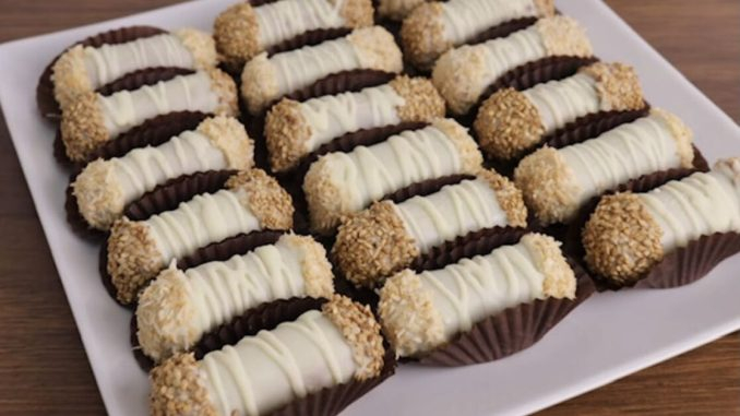 - Dekoracija: Rastopite još malo čokolade i krajeve kolača umočite u kokos ili susam. Ostavite da se potpuno stegnu. Ova dekoracija ne samo da poboljšava izgled kolačića, već i dodatno obogaćuje njihov ukus.